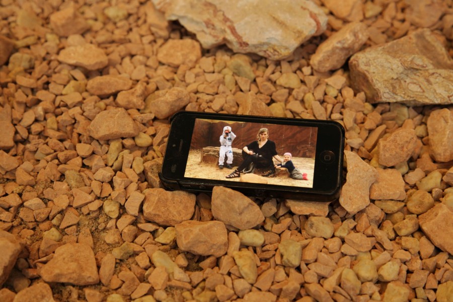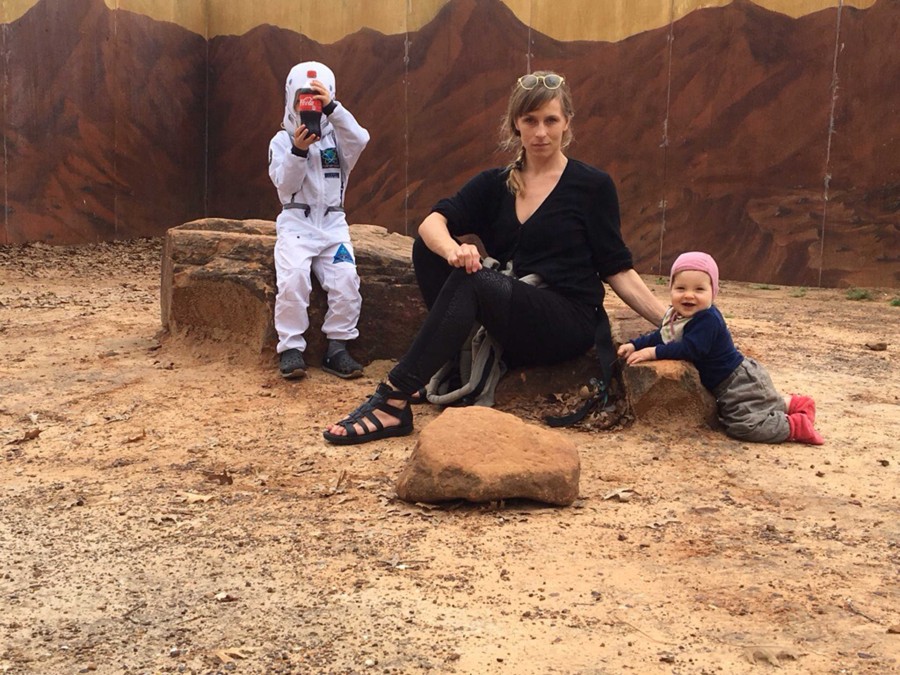 Mars entstand in der NASA Space Station in Houston, wo Engelmann und ihre Kinder vor einer künstlichen Marslandschaft posieren. Die Aufnahme – präsentiert auf einem Smartphone in einem mit Quarz, Marmor und Regenbogenstein gefüllten Diorama – reflektiert das Verhältnis zwischen Erdgeschichte und extraterrestrischer Utopie. Eine humorvolle wie kritische Auseinandersetzung mit Fluchtfantasien ins All angesichts einer Erde in der Krise.