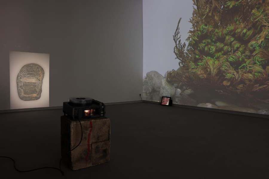 Tectonics ist eine Installation über das Verhältnis von Lebenszeit und Weltzeit – über tektonische Bewegung, genealogische Einschreibung und spekulative Zukunft. Sie versammelt Video, Sound und Diafotografie in einem rhythmisierten Erfahrungsraum, in dem das Lebendige und das Nicht-Lebendige, das Hier und das Anderswo, das Jetzt und das Noch-Nicht miteinander in Austausch treten.
